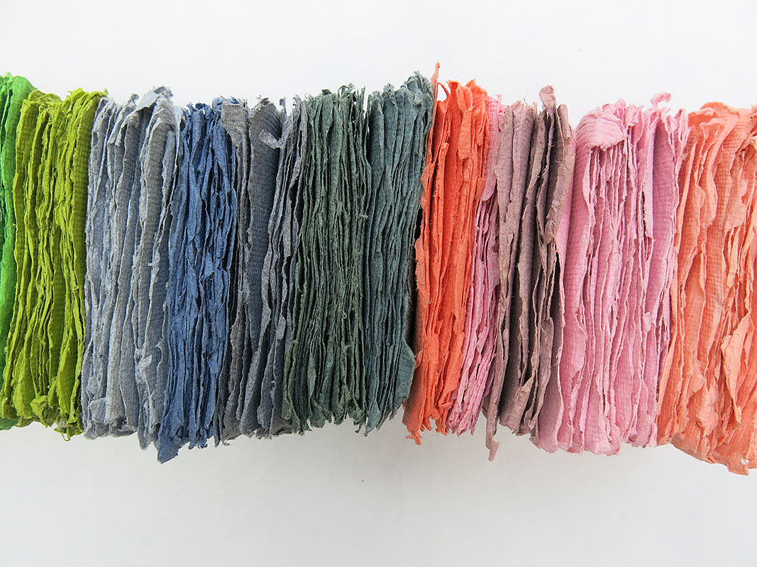 Now in stock, the new range of coloured Khadi cotton rag papers. The new colours are inspired by the gradations of colour you find on paint charts and pantone pages – we have five tones of green, five tones of grey and five tones of pink.