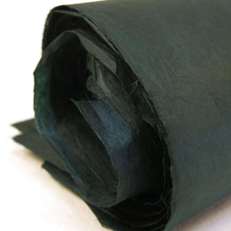 Handmade mountain paper from Eastern Nepal. This paper is made from the bark fibre of lokta, a plant which grows above 3000 metres in the Himalayan foothills. This is a renewable resource and the fibre collection and paper manufacture create valuable employment in the hill areas. The dyeing is done in the Kathmandu valley using dyes which meet current EU standards on effluence and toxicology. Vegan.