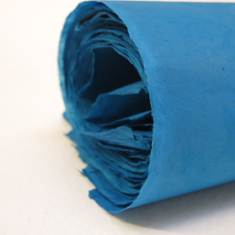 Handmade mountain paper from Eastern Nepal. This paper is made from the bark fibre of lokta, a plant which grows above 3000 metres in the Himalayan foothills. This is a renewable resource and the fibre collection and paper manufacture create valuable employment in the hill areas. The dyeing is done in the Kathmandu valley using dyes which meet current EU standards on effluence and toxicology. Vegan.