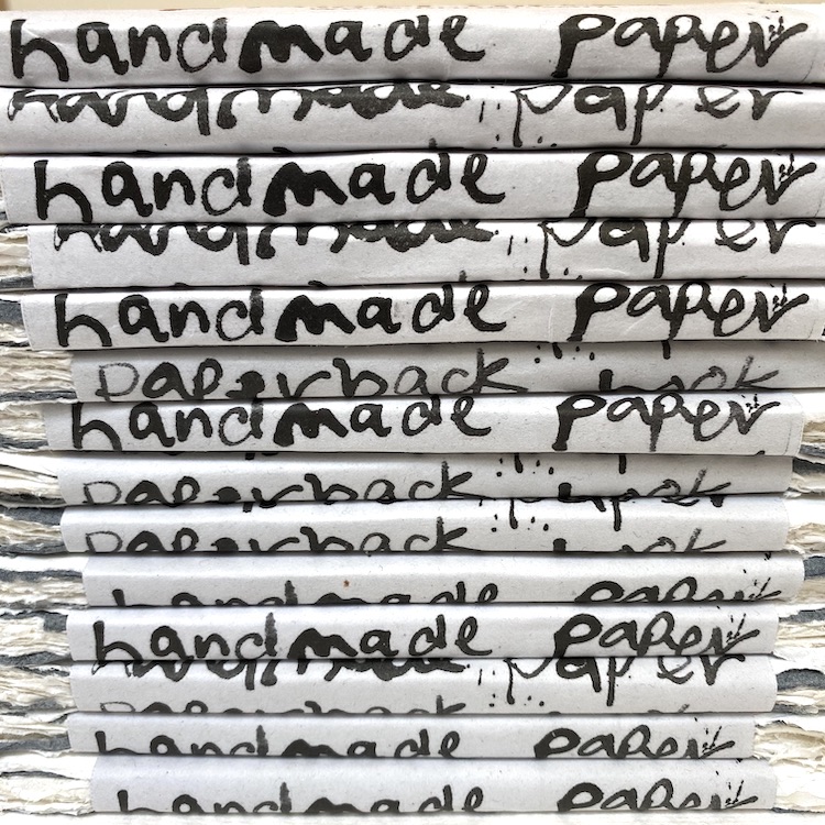 Pages are artists’ handmade paper from Khadi Papers India. The paper is 100% long fibred cotton rag.