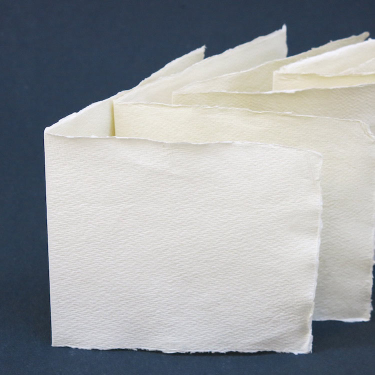 Artists’ handmade paper. The paper is made from 100% long fibred cotton rag. The cotton raw material is sourced from T-shirt cuttings.