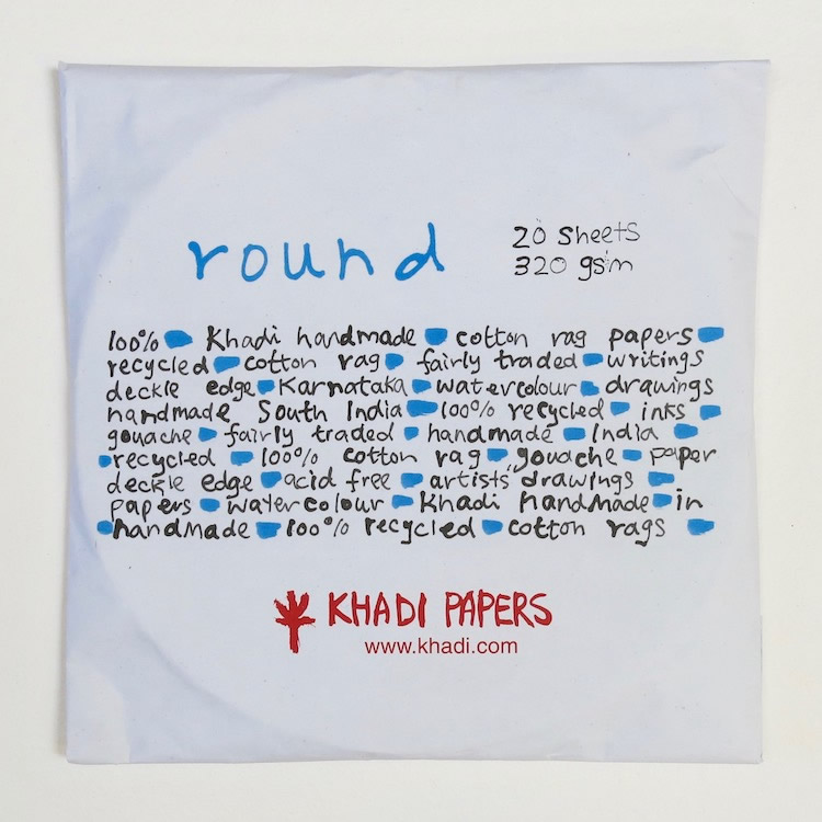 Artists’ handmade paper from Khadi Papers India. This paper is made from 100% long fibred cotton rag.